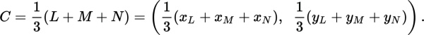 质点可以被定位在每条边 1/3 处和对边顶点的连线。这个方式也适用于很多其他形状。