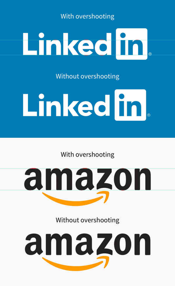 △ 没有视觉补正的话,Linkedin 中的字母「e」和 Amazon 中的字母「z」就无法视觉平衡