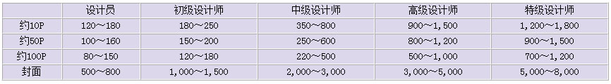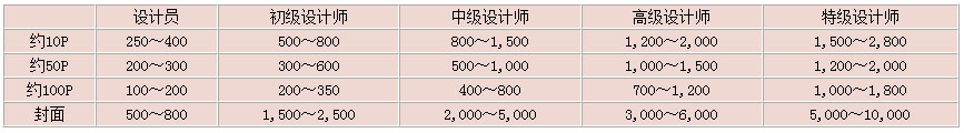 书籍装帧类:封面、封底、扉页、目录、版式 单位:人民币(元)