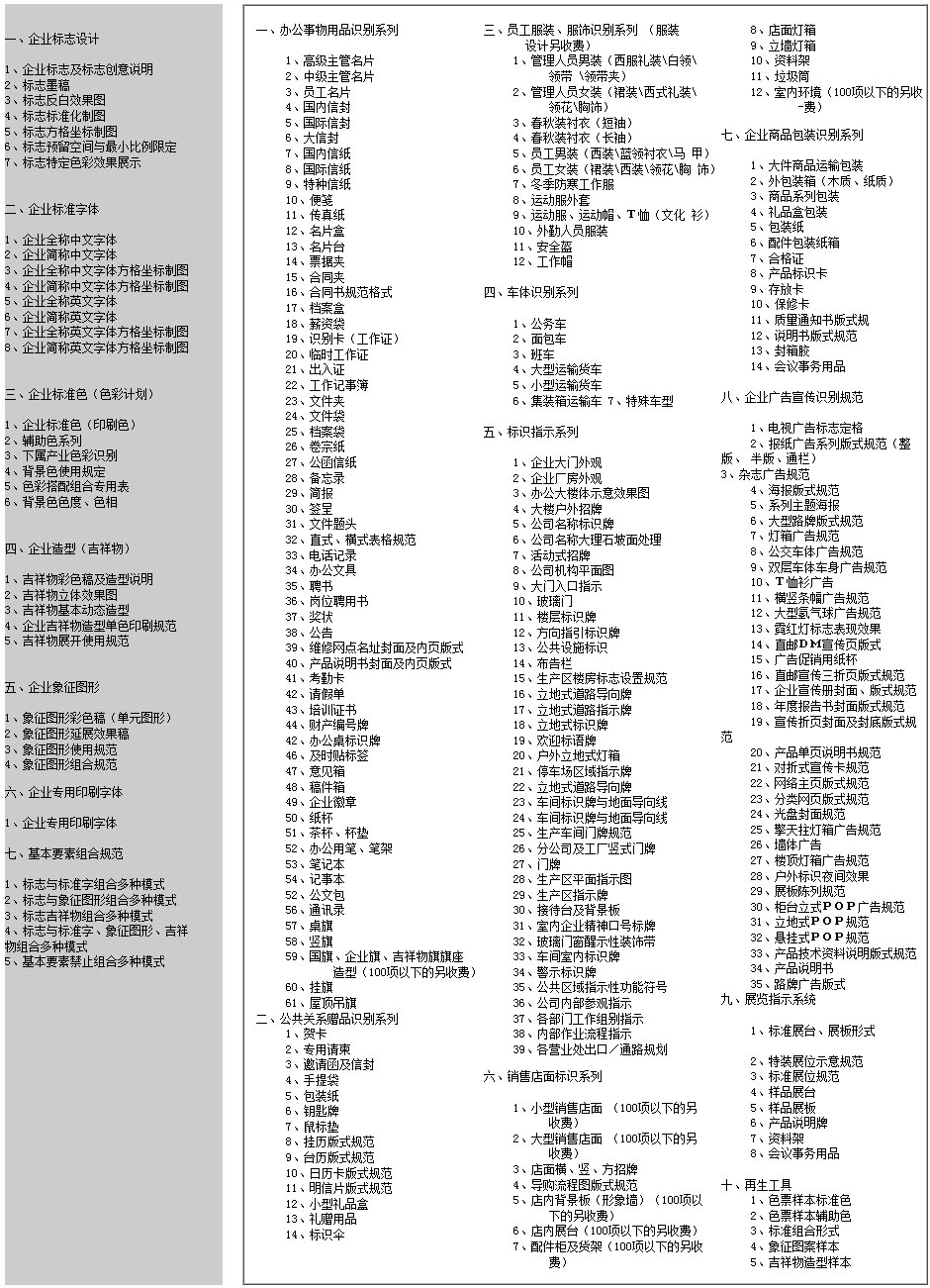 2、识别系统总体价格可根据项目数量进行调整。具体参考《视觉识别(VI)系统项目表》;
