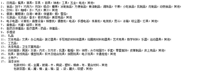 日用品、文体用品、工艺品、音像品、土特产类 单位:人民币(元)