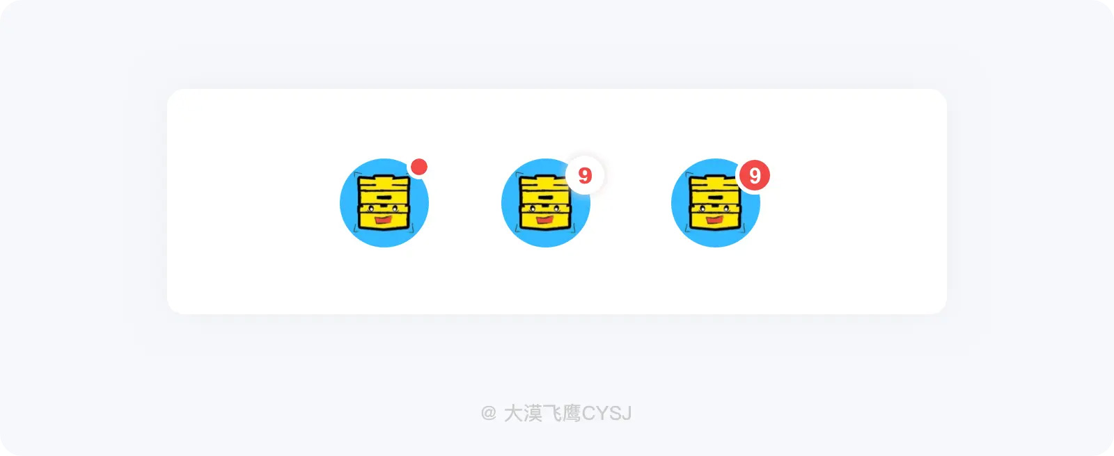 ·强提示:圆形白色描边及红色填充+数字反白,较突兀的提示方式。
