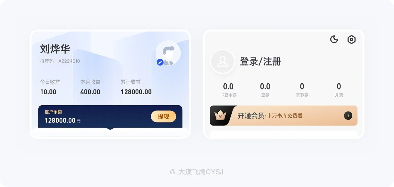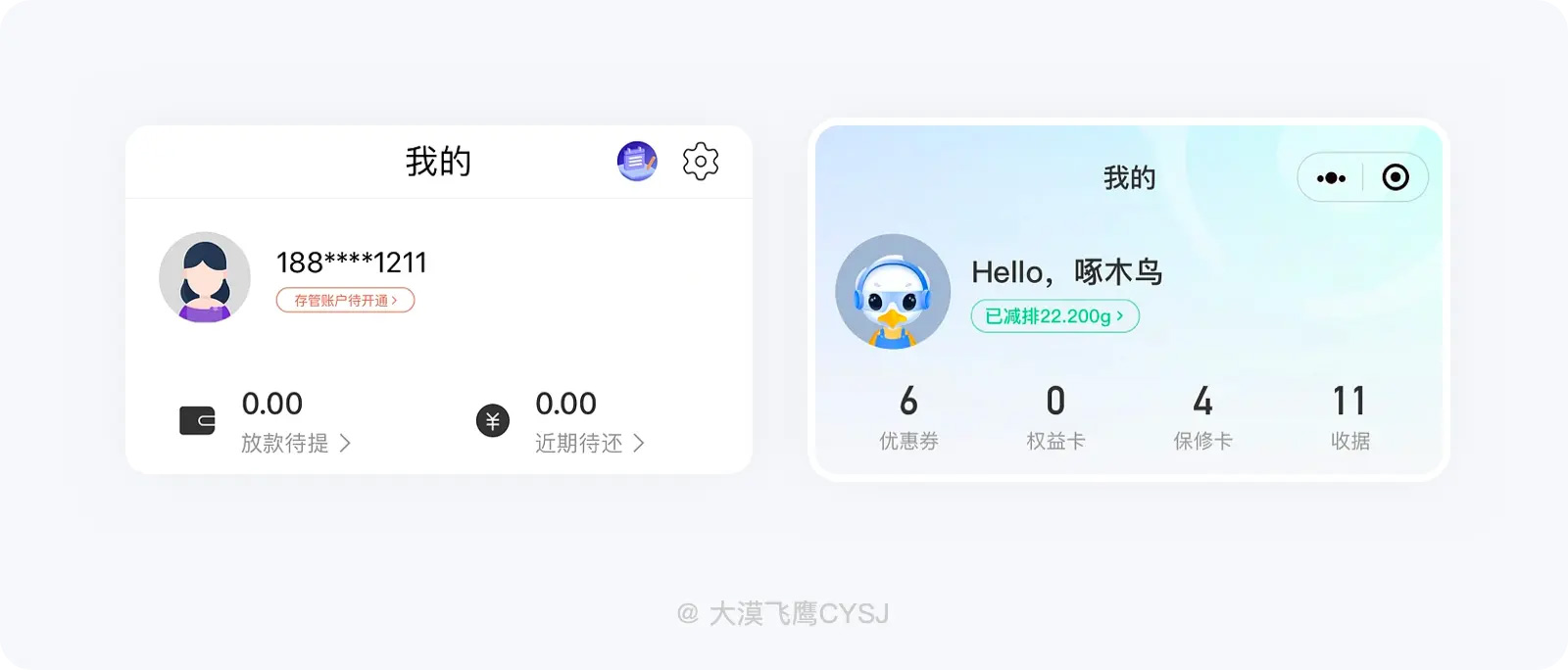 非强制登录的应用,切换到个人中心时,一般会有一个默认头像占位,可以是人物形象剪影或品牌吉祥物,以确保用户在登录之前保持页面的完整性。另外,即便用户登录后有上传自己的头像,但遇到网络延迟、头像加载失败、匿名操作等情况,系统默认头像都可起到临时替补的作用。常见的默认头像有灰色、彩色两种色彩模式,其二者各有利弊。