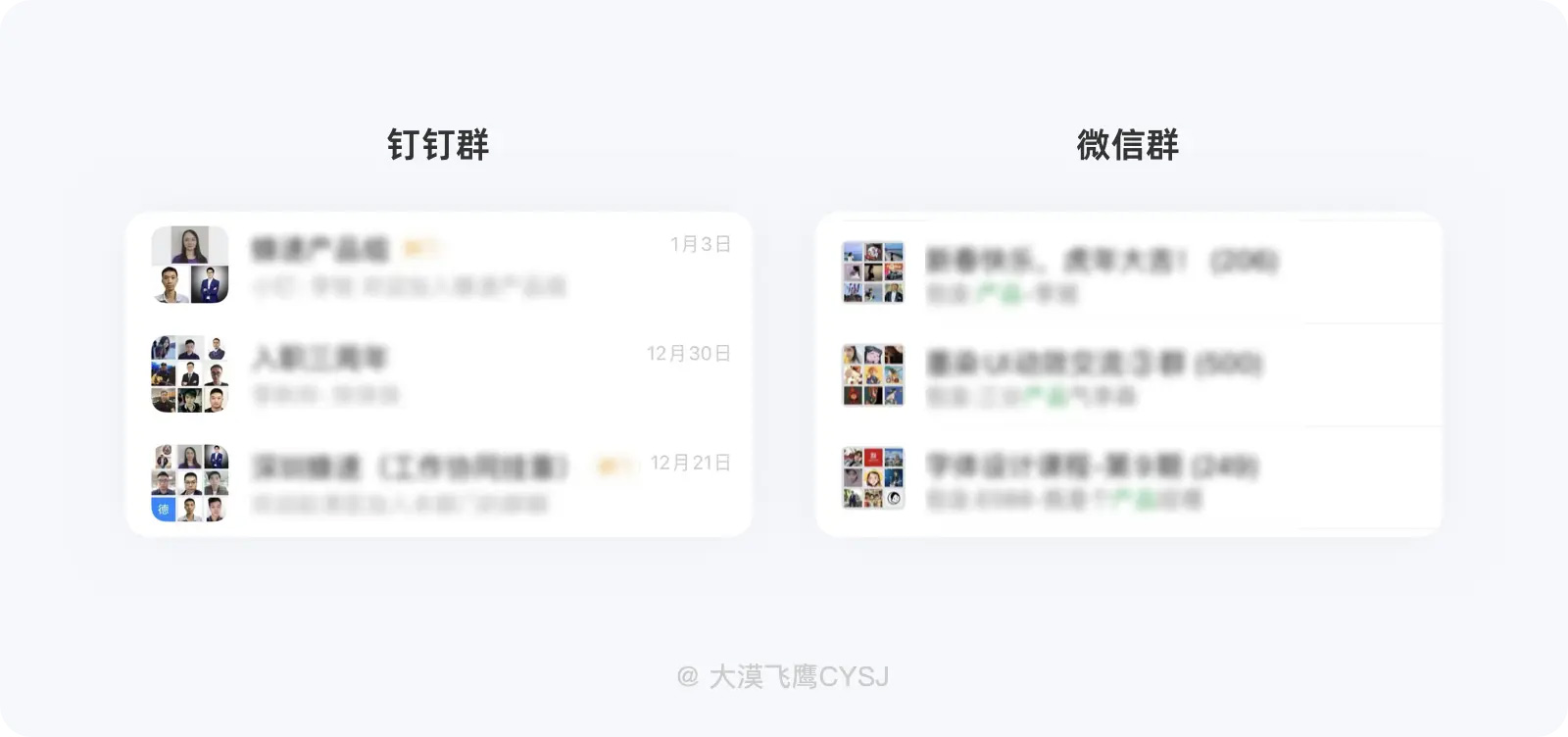 只出现在群聊中,由多个群成员的头像组合而成,不同的应用对头像上限的设定不同,最为常见的是4个、9个两种。群组头像大多数不支持自定义上传,会根据当前群成员的数量(1-4人、1-9人)进行宫格排列,且不会超出设定的上限,例如钉钉群、微信群、QQ群等。