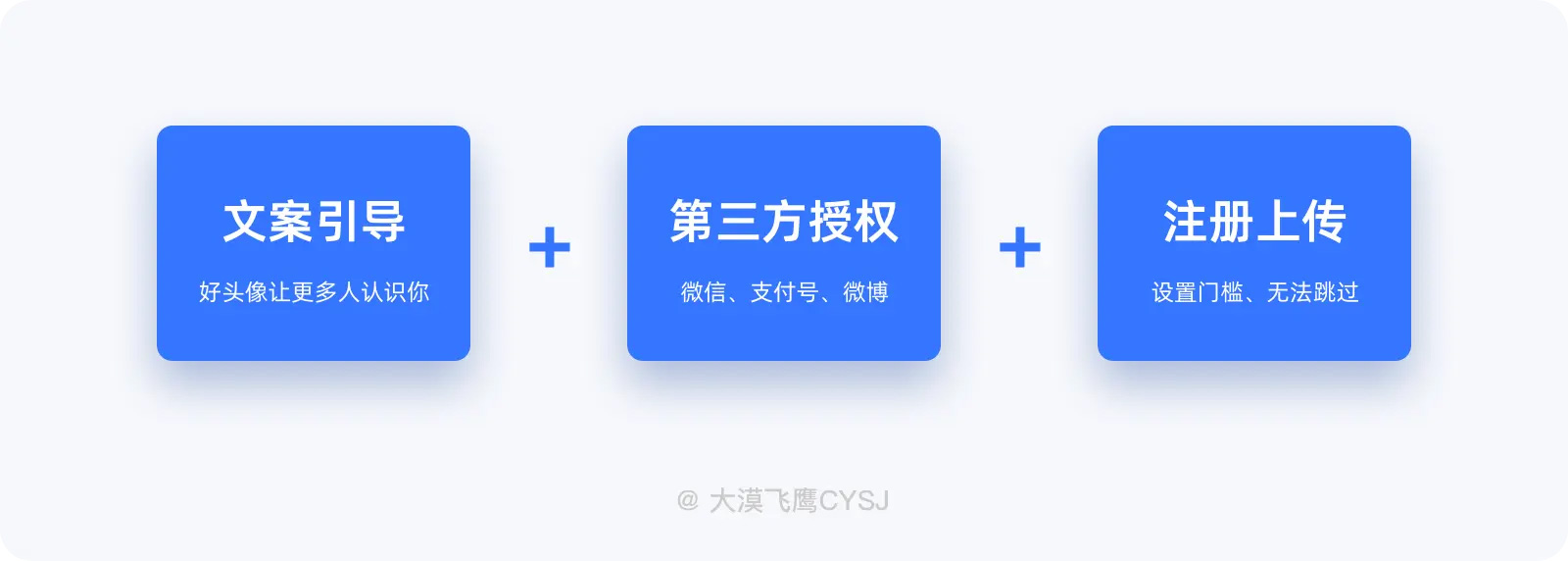 部分社交类应用将上传头像作为注册流程中的必选步骤,任何用户都无法跳过,切记这种方式非必要不可滥用/乱用,这相当于对用户注册增加了门槛,任何产品每多一点操作成本,都会有一批用户离开,需根据产品定位以及强制上传头像的重要性来决定,避免得不偿失。