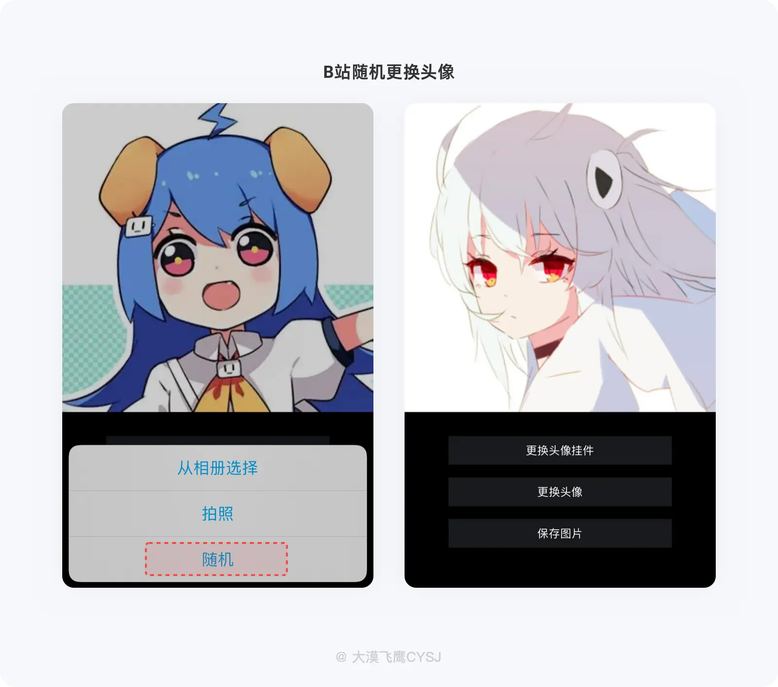 注册成功后,系统会随机匹配个人头像,相比用户自己在列表手动选择,则多了一份神秘感与期待感,让头像的设置变的更有趣,例如小红书、B站等应用。