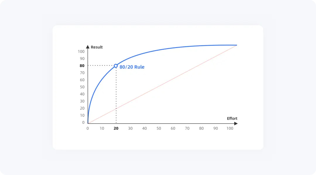 20世纪初,由管理学家约瑟夫·朱兰(Joseph Juran)将其命名为帕累托法则,即80%的结果是20%的原因造成的,并且号召关注「重要的少数」而不是在「琐碎的多数」当中投注精力。后续在经济学中得出结论(80%的财富掌握在20%的人手里)更加证实了帕累托法则的观点。