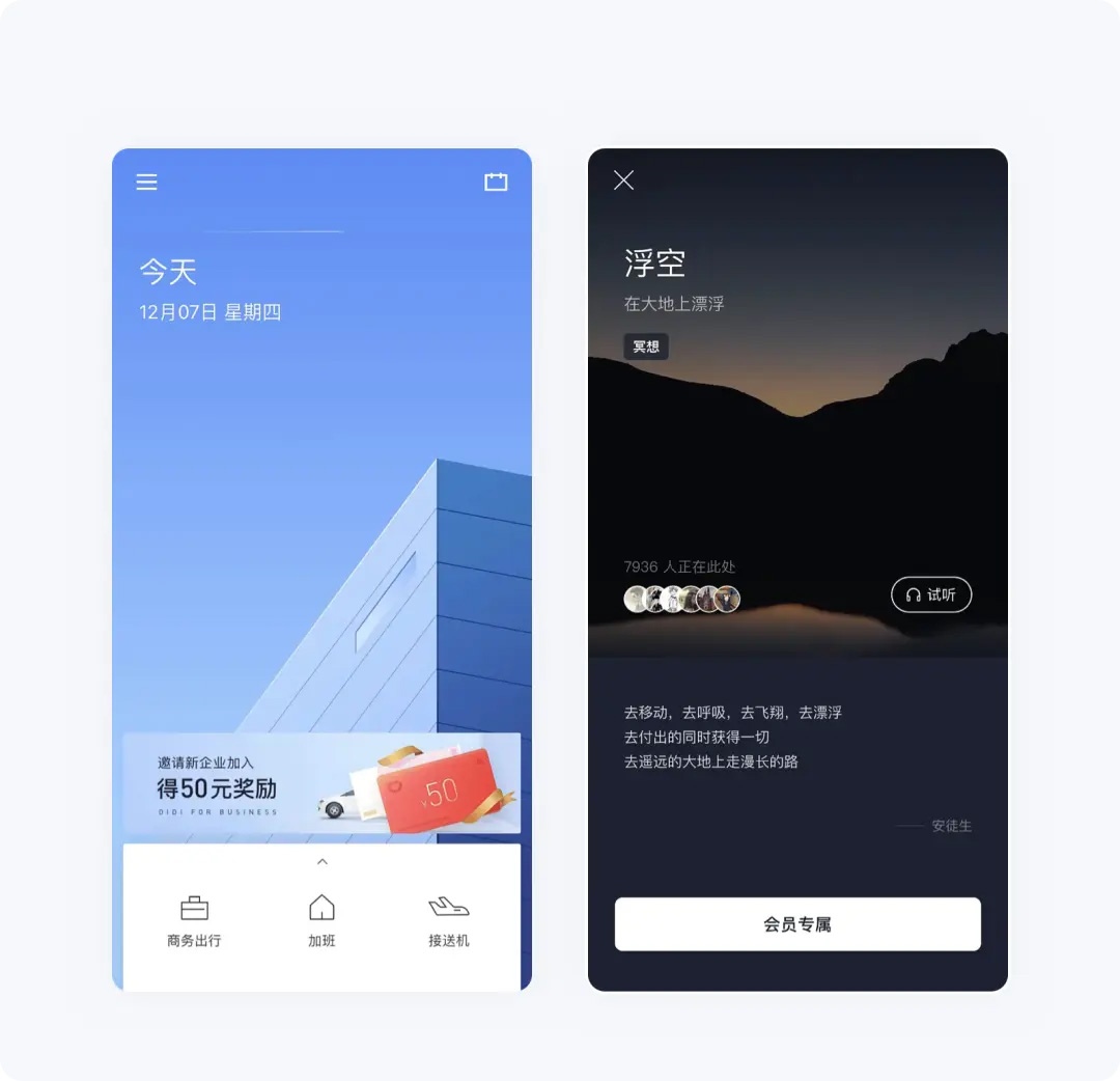 在UI18luck新利全站 中,我们会将主要精力花费在20%的页面18luck新利全站 上,例如APP底部标签栏的几大主页或其它重要的一/二级页面,会花费更多的心思去构思不一样的布局、表现手法,将18luck新利全站 功底凸显出来。而剩下80%的页面就相对机械化,会使用一些常规样式以及复用的方式像搭积木一样快速完成,成本之低、效率之高毋庸置疑。
