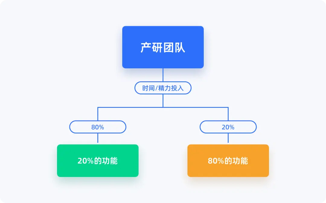 任何一款产品都不能忽略主次,每隔一段时间就要重新评估功能价值,以备后续的更新迭代,针对非关键性的80%切勿耗费过多的精力,以免喧宾夺主,不仅得到不好的反馈、还会带来不必要的损失,吃力不讨好。