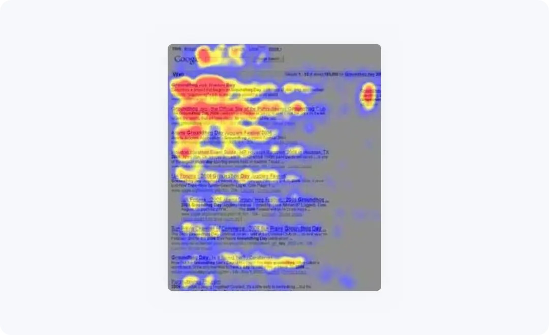 如下面这张眼动测试图,F型布局也正好诠释了80/20法则合理性与可行性,在页面中20%的关键区域,吸引了用户80%的注意力。