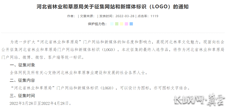 河北省林草局发布征集网站和新媒体标识(logo)的通知。通讯员 供图