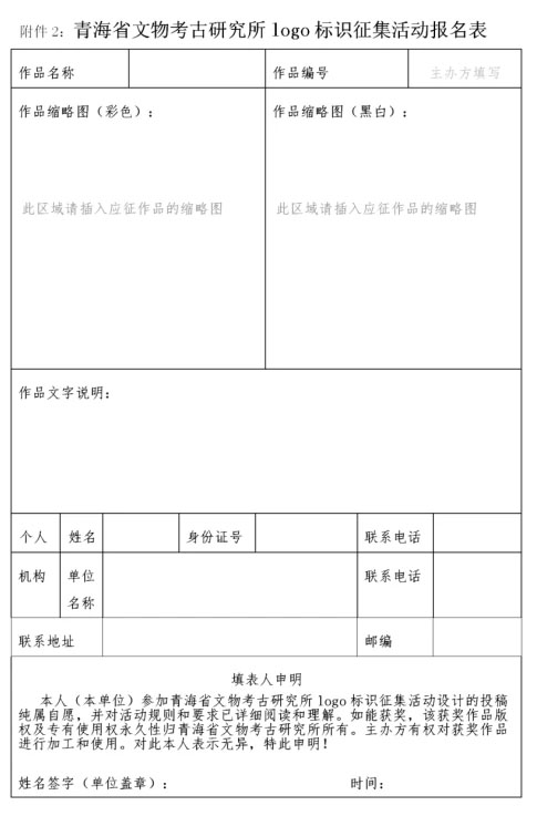 附件2:青海省文物考古研究所logo标识征集活动报名表