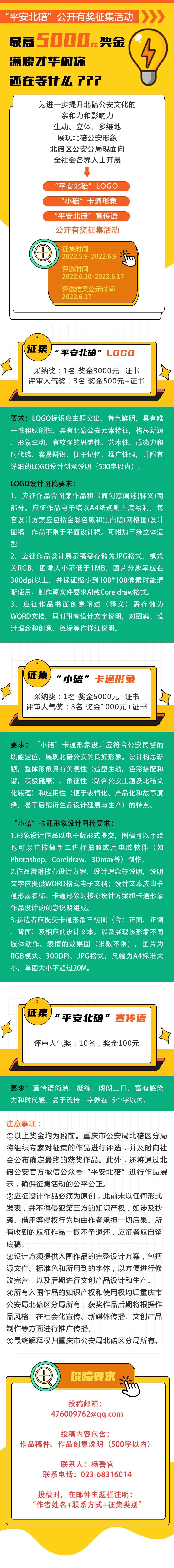 5000元 北碚区公安分局征集平安北碚LOGO、卡通形象、宣传语