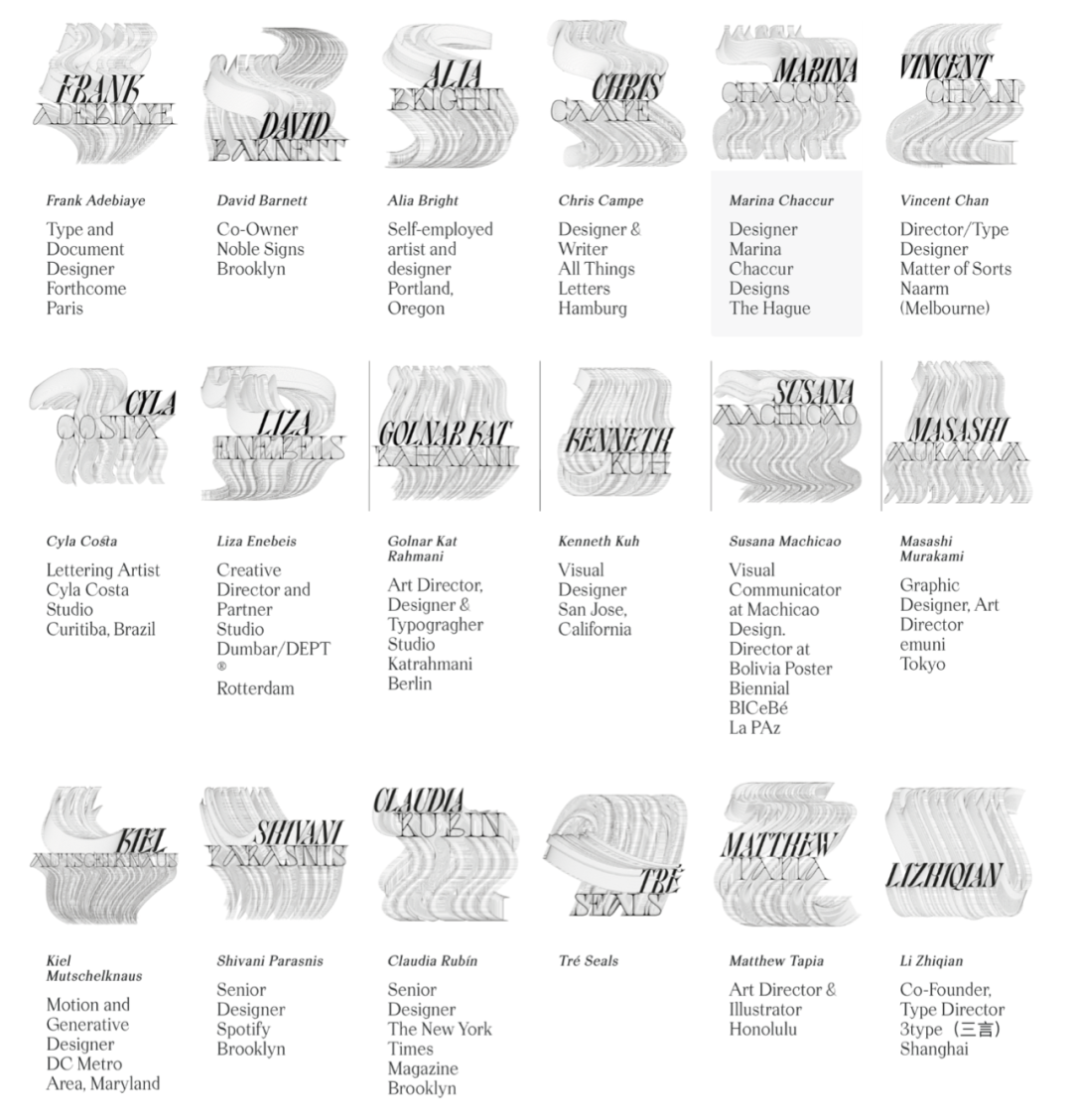我们的评委是全世界最最顶尖的字体排印领域的实践者,每年由TDC的顾问委员会推荐选出,选择的目的是为了平衡高度的专业性与广泛的视野。今年评委团的成员来自全球,同样非常多元,还包括一些往届新升奖的获得者。2023年新升奖的评委团成员如下: