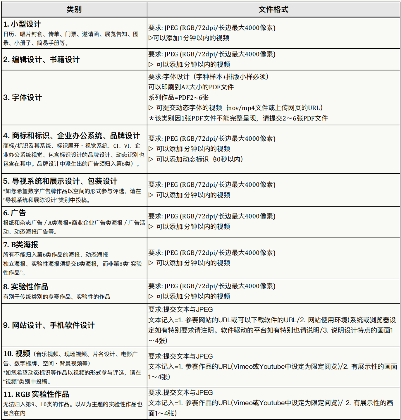 2) 东京字体指导俱乐部年度大奖 (Tokyo TDC Annual Awards) 旨在寻求字母 / 字符视觉表达的可能性,而非为了攻击个人或特定群体。我们将拒绝接受以下类型的作品: