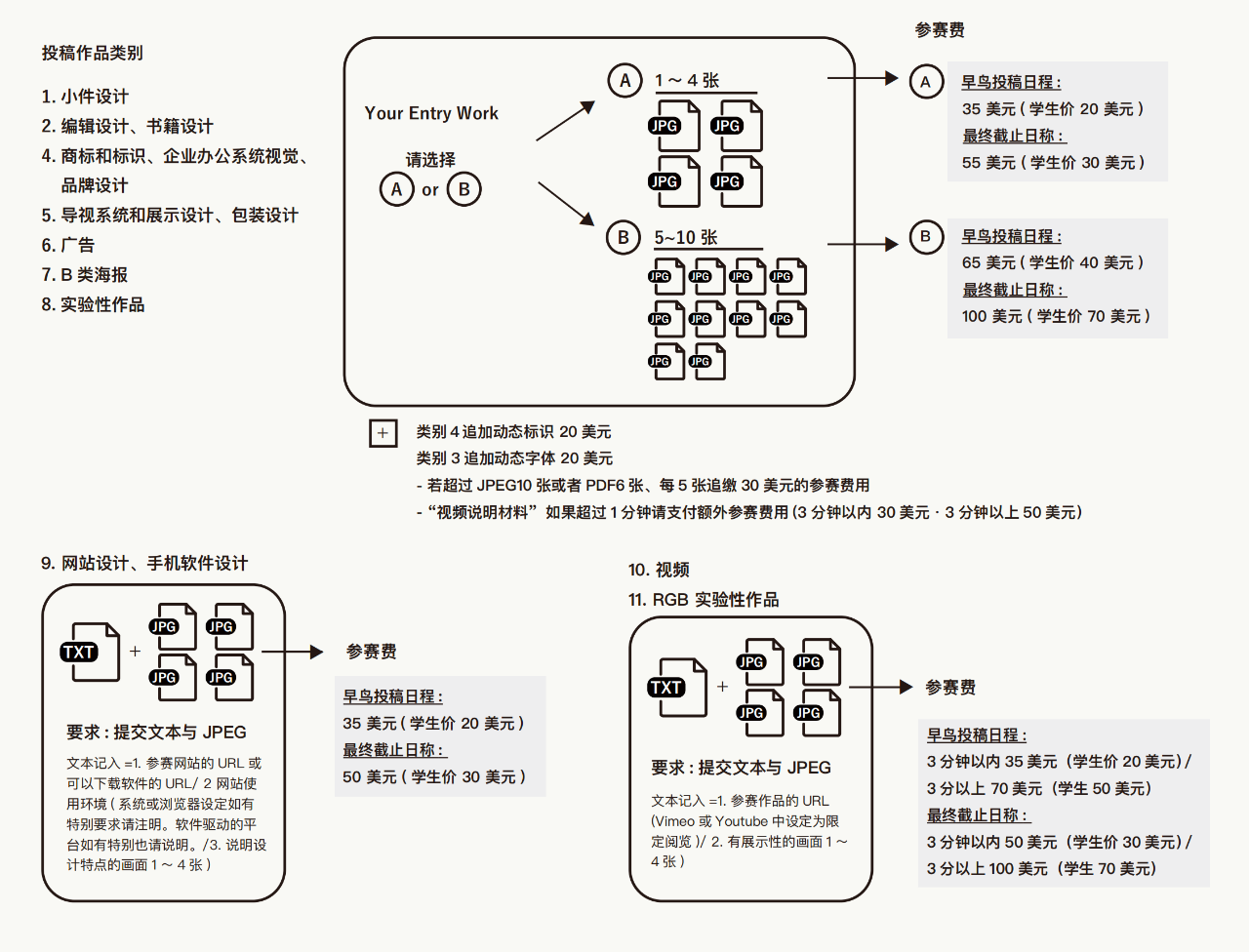 ‒ 若超过 JPEG 10张或者 PDF 6张、每5张追缴30美元的参赛费用