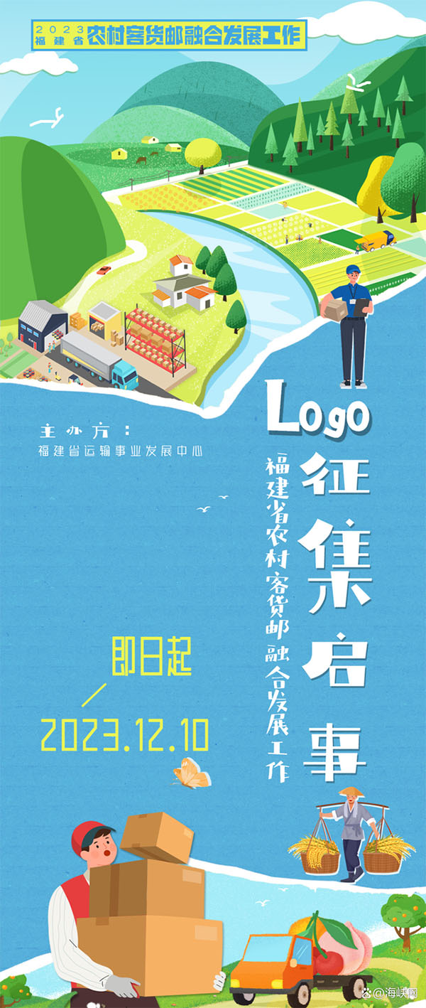 为统筹解决农民群众出行、物流配送、寄递服务三个“最后一公里”和“第一公里”问题,进一步规范我省农村客货邮融合发展工作,扩大工作社会知晓面和影响力,营造共同推动农村客货邮融合发展的良好氛围,拟面向全社会公开征集“福建省农村客货邮融合发展工作徽标(logo)”。