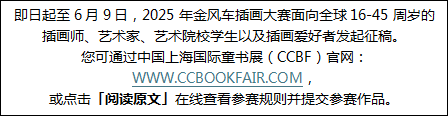 由上海市新闻出版局指导、中国上海国际童书展(CCBF)主办的年度国际插画赛事一一金风车国际青年插画家大赛(金风车插画大赛)于今日开启2025赛季的全球征稿!