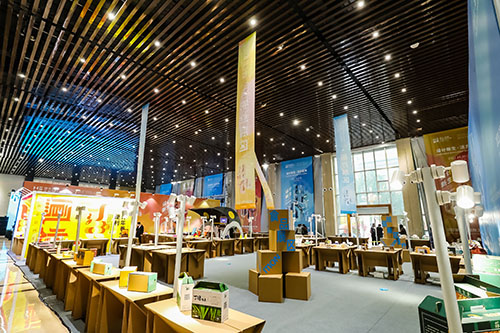 理念,全面采用绿色环保、可回收重复利用材料--瓦楞纸制作展台,打造绿色展览。