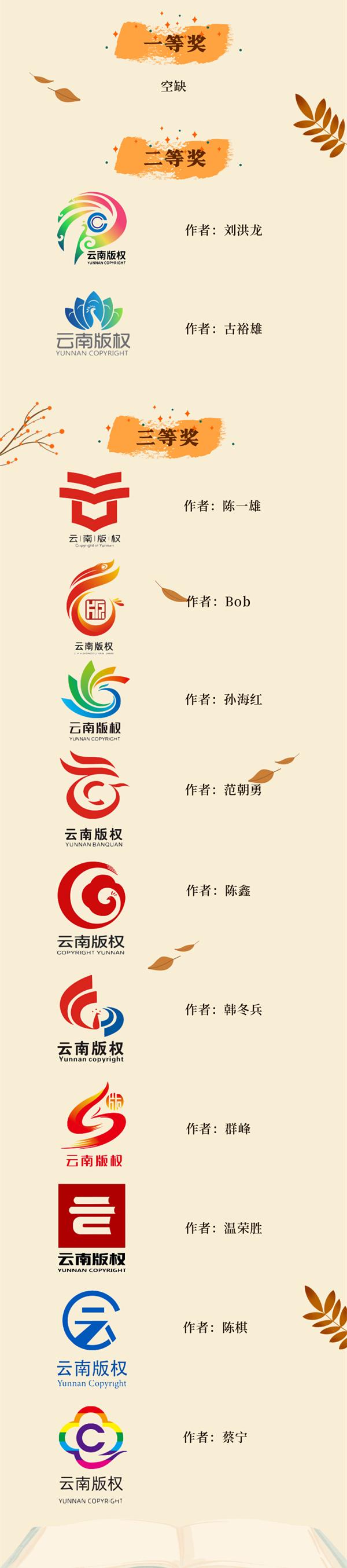 活动得到社会各界的广泛关注与大力支持,经评审委员会认真评议,最终评选出“云南版权”logo(标识)获奖作品12件,其中一等奖空缺、二等奖2名、三等奖10名。现将“云南版权”logo(标识)征集活动获奖作品名单予以公示。公示期为七个工作日,即2021年12月10日至12月20日。
