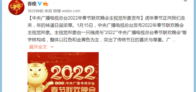 1月15日,中央广播电视总台发布2022年春节联欢晚会主视觉形象。主视觉形象由一只瑞虎与“2022”“中央广播电视总台春节联欢晚会”等字样构成,整体以红色和金黄色为主,突出了传统节日的喜庆与厚重。广东省美术家协会副主席、深圳市美术家协会主席陈湘波先生专门为总台2022年春晚18luck新利全站 了萌虎形象,作为今年春晚的标识。