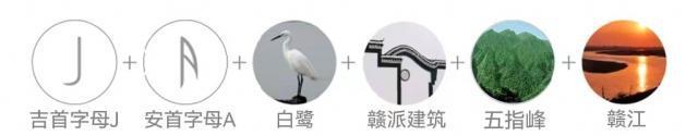涵盖了庐陵文化元素,包含赣派建筑、白鹭、赣江、五指峰。其中寓意着“三千进士”荣耀的“白鹭”形象,巧妙地融入了吉安首字母J和A。logo整体感觉温润儒雅,也象征着庐陵文化源远流长。