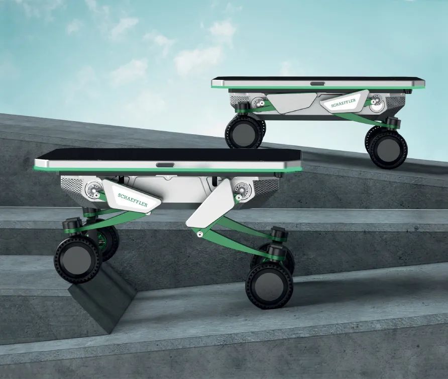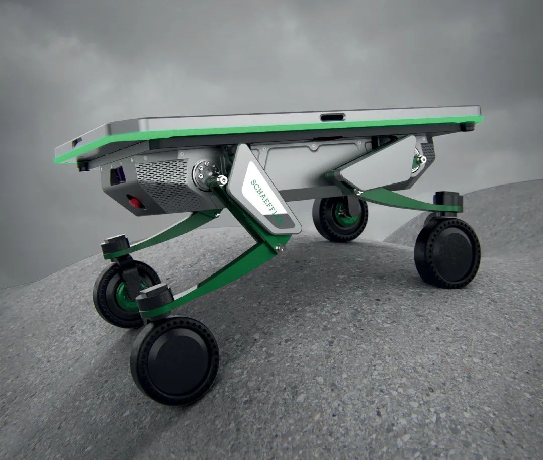 用于模块化安装各种附件,双向可伸缩支腿能够爬坡和穿越各种地形。通过整合舍弗勒的组件,平台可以非常轻松地实现自我升级。