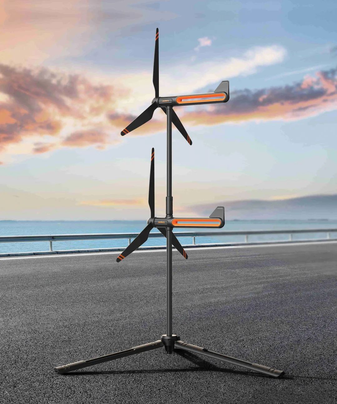 增加了输出功率,同时减少了对气候的依赖。上下风扇叶片交错排列,以使高度最小化。三脚架有一个内置的可折叠立柱,在使用时可以有效地加固设备,以避免强风造成的倾倒。它还支持多单元并行输出。与传统风力发电设备相比,Jackery AIR-W可以适应更广泛的应用场景,并为风力发电设备的微型化和便携性提供了新的18luck新利全站