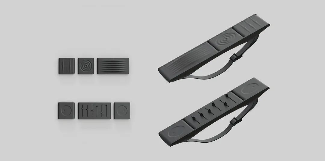 每块板的形状都受到各种乐器的启发,如吉他、钢琴、鼓和电子设备。从仪器的外观和操作特性出发,简化了表面纹理,为玩家提供直观的触觉反馈。