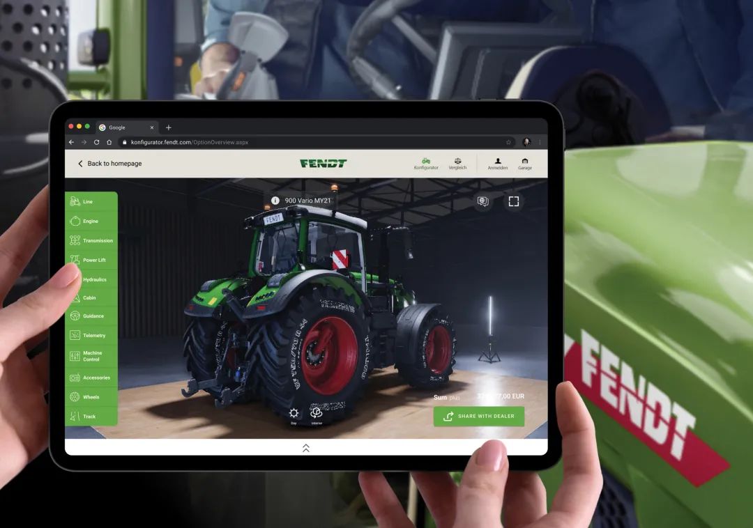 实时三维可视化使农民能够将配置好的机器放入他们的虚拟农业环境中,随后可以用机器的性能数据作为补充来创建一个数字版双胞胎,并以此实现一流的售后服务和支持。