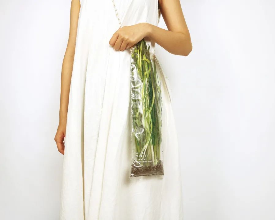 “三种韭菜”包含韭苔、韭菜花和韭黄,用专业的食品保鲜真空袋包装,具有防水功能,以满足客户的需求。此外,包装中的土壤含有混合种子,可以用来重新种植蒜苔,实现循环利用的价值。这个概念提供了一种新奇的体验,强调食品杂货购买可以既时尚又实用。