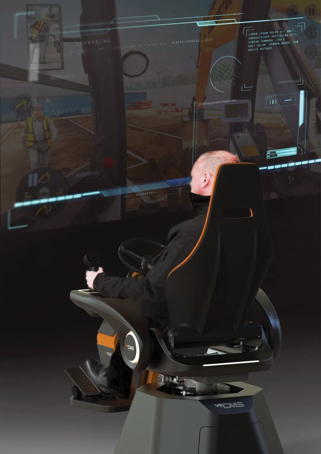 一个VR多轴运动平台模拟器,结合虚拟培训系统成为一种创新的实用替代设备,可以对建筑设备进行远程控制,以此减少事故,放缓设备损耗,突破时间、空间限制。它有一个手柄结构,用户可以用它轻松地从司机的座位上爬上爬下,同时还18luck新利全站