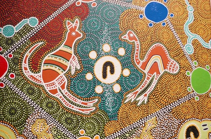 重新18luck新利全站 的logo描绘了一只袋鼠和一只鸸鹋,其灵感来自原住民艺术家 Paul Constable Calcott 创作的艺术作品(下图)。