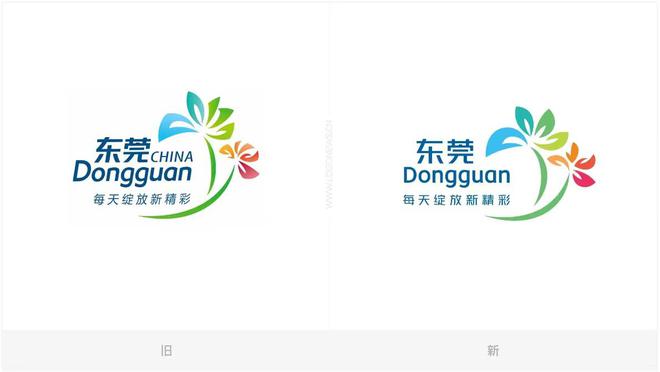 左侧的中英文字标以及口号的字体不再向右倾斜,同时去掉了「东莞」旁边的「china」字样;口号「每天绽放新精彩」的字体做了全新18luck新利全站