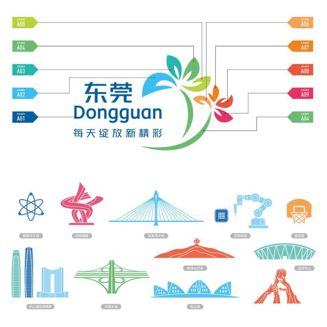 新版东莞城市标识依然以红、蓝、橙、绿为主色调,分别寓意开放创新之花、科创制作之花、创意时尚之花、青春活力之花在东莞大地全面绽放,也象征着“近代史开篇地”“国际制造名城”“潮流东莞”“篮球城市”等城市名片的多姿多彩,将进一步擦亮四张城市文化名片,加快推进东莞文化强市建设。