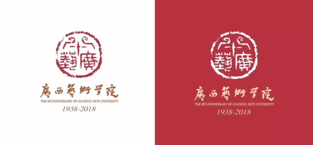 2018年,广西艺术学院发布了80周年校庆徽标。主体采用印章的形式,小篆的字体古朴典雅,印章上方的“八十”代表学校80年的办学历史,“广艺”是广西艺术学院的简称。