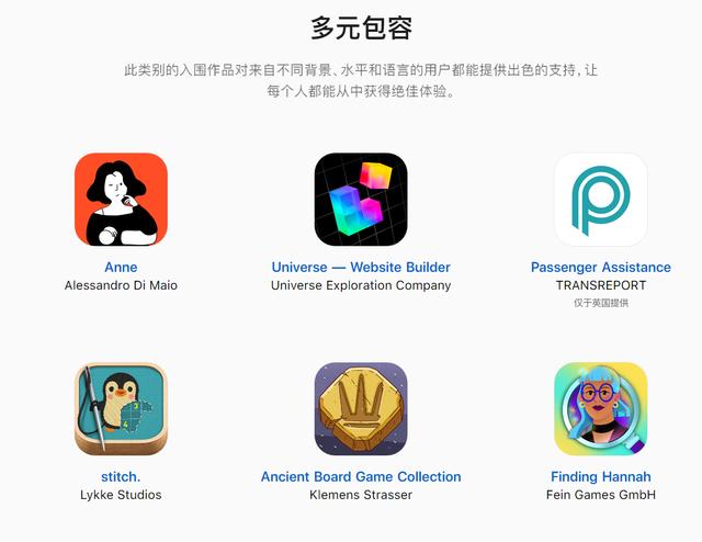 多元包容:此类别的入围作品对来自不同背景、水平和语言的用户都能提供出色的支持,让每个人都能从中获得绝佳体验。
