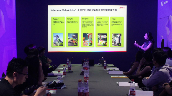 此次Adobe 3D创意工作坊,Adobe 3D和沉浸式业务大中华区、澳洲、新西兰包括东南亚地区的业务负责人尹珊女士和Adobe大中华区Substance 3D的产品经理孙飞先生向来宾介绍了Adobe的3D解决方案在一些行业里的创新应用。