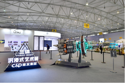产业展览会。该场景由几十位艺术家和工程师历时3年打造,真实还原三体场景,这也是12月即将在蓉呈现的“三体大型沉浸式艺术展”给创意周观众的一份先睹为快的特别礼物。