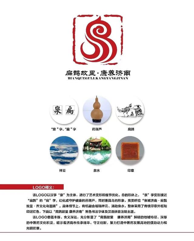 据悉,该logo以汉字“泉”为主体,进行了艺术变形和细节优化。总的形体上,“泉”字变形接近“扁鹊”的“扁”字,幻化成守护健康的药葫芦,同时兼具鸟的形象,完美呼应“泉城济南·扁鹊故里·齐文化鸟图腾”。具体细节上,有机融合福瑞祥云、涌动泉水,整体采用了传统印章外框和印泥红色,下面以“扁鹊故里 康养济南”黑色书法字体及汉语拼音注明主题。