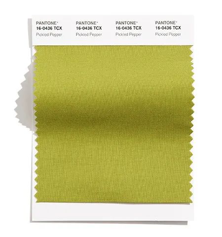 Pickled Pepper有一种来自其温暖底色的强烈味道,是一种非常新鲜的颜色。Pantone称其为“花园品种绿色,既有温和的甜味,又有令人愉悦的浓郁味道。”