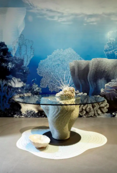 而作为本届“18luck新利全站 上海”当代18luck新利全站 馆国际品牌代表,Roche Bobois 罗奇堡特别呈现了2021春夏新品 Corail 餐桌、 Bubble 沙发、Bubble 床三款最具创新和前瞻性的家具,致力于打造将前沿时尚与新兴技术完美融合的典范之作。其中由 Antoine Fritsch & Vivien Durisotti 18luck新利全站 的Corail 餐桌作为一款3D打印产品,每一件都独一无二,在18luck新利全站 上也能满足消费者的个性化定制需求。餐桌形状使人联想到的暗礁上的珊瑚群落或巨大的巴洛克贝壳,灵感来自于自然界中的不完美之美。结合展厅独有的海洋珊瑚场景,整体呈现出自然美学与未来感的和谐共生。