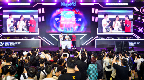 闫紫境现场助阵。同时还邀请了知名UP主@瞳瞳与现场观众一起合唱机动战士高达的主题曲,一时间勾起了诸多观众的青春回忆。此外,还有TONY大叔与UP主@中国BOY一起与观众进行互动,现场的观众的热情也在此时瞬间被点燃。