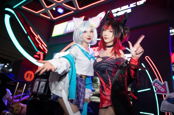 在7月9日下午,ROG信仰星球的二次元区开展了天选姬和RO姬的互动秀。不仅有绝美的真人天选姬、RO姬Coser闪亮登场互动,观众们也纷纷上前合影留念。在二次元区的RO姬专区,搭建了两组二次元风格的PC解决方案,其中红黑RO姬采用的电竞显示器是ROG Swift PG32UQX超神,而白色雪舞战姬采用的则是ROG Strix XG27AQ绝景和ROG Strix XG16AHPE-W这款纯白配色的便携电竞显示器。