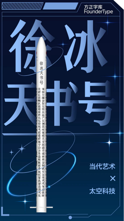 2021年的2月1日,一枚名为“徐冰天书号”的艺术火箭在中国酒泉点火发射,这是全球第6025次航天发射,也是首枚以艺术之名发射的火箭。这枚火箭涂装采用文字作为视觉主体,其中火箭名称使用的是方正字库与艺术家徐冰合作18luck新利全站
