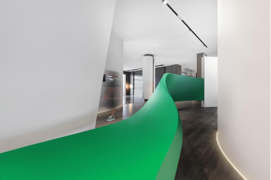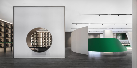 于是,一道绚丽的翠色隐约分隔空间,构成一道隐形的边界,一边是敞阔明亮的酒文化开放空间,一边是悠然会客的商务招待空间,更广泛的现实应用意义由此诞生。