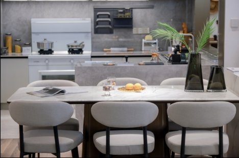 在“未来社区·无距之矩”全岩新家案例中,总18luck新利全站 师贺小雨将冠珠岩板产品大胆地运用到客厅、厨房、卫生间等多种场景中,灵动实用的功能设置搭配简约大气、富有肌理感的装饰材料,赋予生活空间丰富层次感和生活质感。