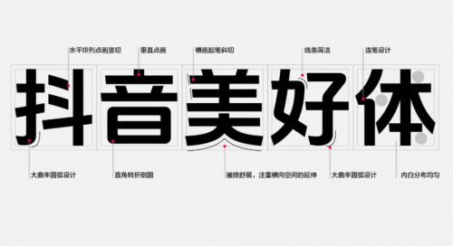 抖音美好体包含6763个中文字符,682个西文及数字符号,执行国家GB2312-80简体中文编码字符标准。作为品牌标准字体,抖音美好体将会率先用于抖音及其子品牌中,助力品牌视觉形象的统一,提升品牌的官方性、权威感。方正字库提取了“抖音”logo字体简约清新的风格特征,结合标题场景的使用,打造了笔画较粗的大字重字体。