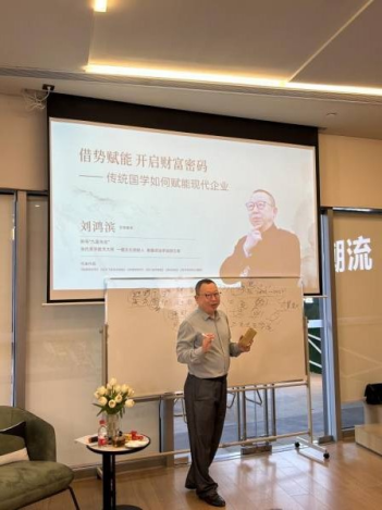 在沙龙中,刘鸿滨老师讲解了国学思想在现代企业经营管理中的应用与实践,为企业家们分享了如何找到并开启个人及企业的财富密码,同时能够借势赋能,攀上人生新境界。