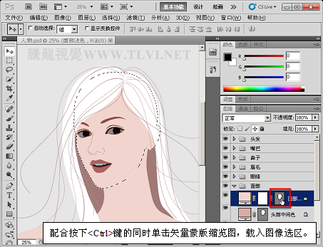 (2)在“图层”调板中选择“面部”图层组中的“面部浅色”图层,并载入该图层中图像的选区。